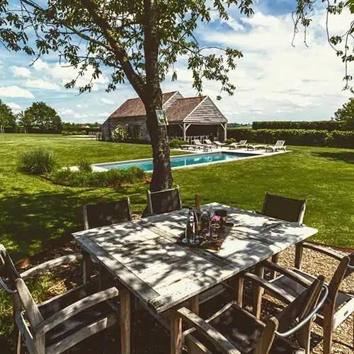 Retrouvez-vous en famille ou entre amis autour d’une grande piscine chauffée (disponible de mai à septembre), nichée au cœur d’un vaste jardin thématique spécialement aménagé pour petits et grands.